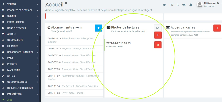 Accéder au module Photos de factures - Option 1
