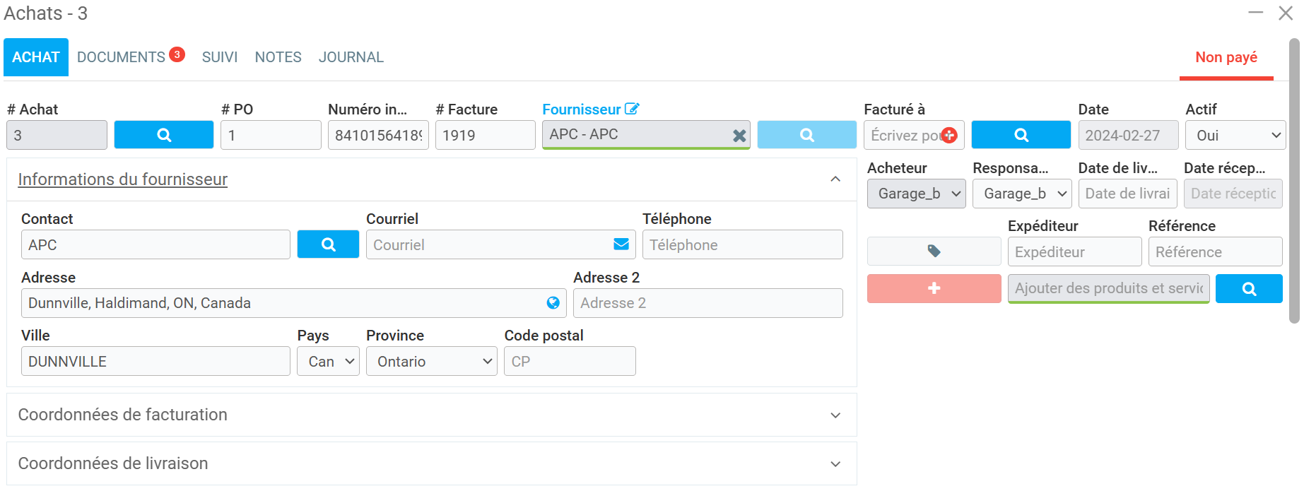 La duplication d'un achat auprès d'un fournisseur est une fonction pratique qui permet de recréer rapidement une commande existante.