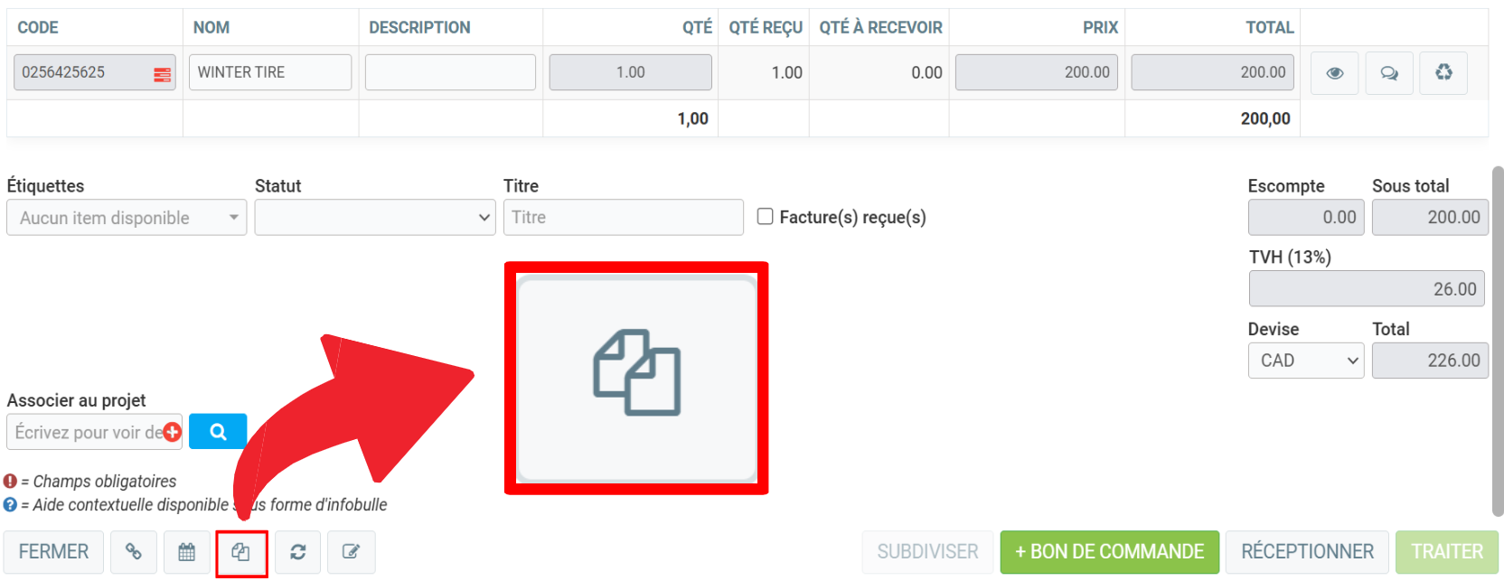 Pour dupliquer, choisissez Oui dans la boîte de confirmation avec le message suivant: "Êtes-vous certain de vouloir faire une copie de cet achat?".