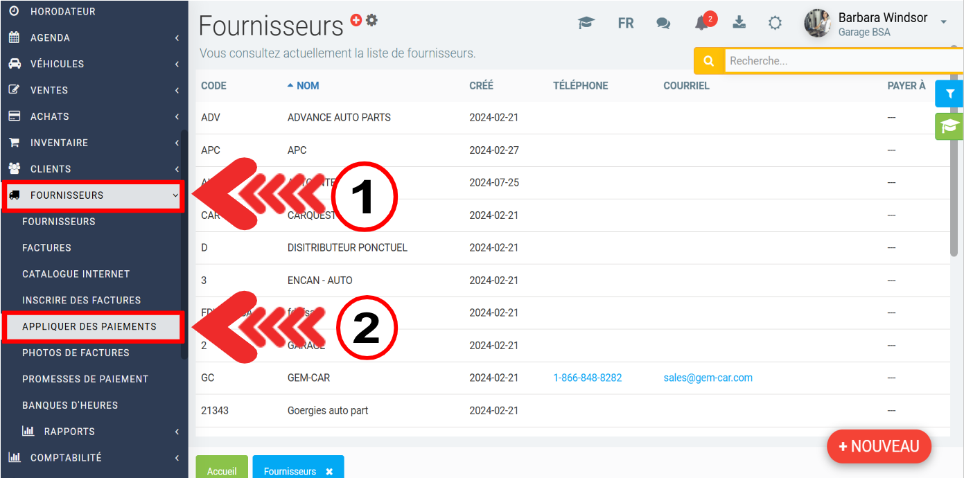 Dans le menu de gauche, cliquez sur Fournisseurs > Appliquer des paiements.