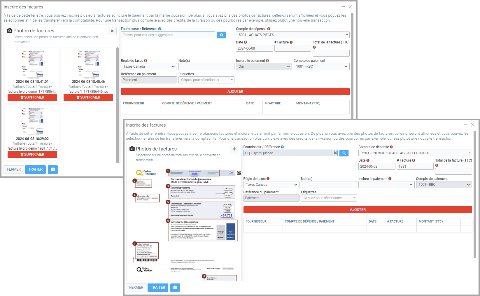 Répétez l'opération pour compléter la saisie de plus d'une facture (pour documenter plus d'une photo.