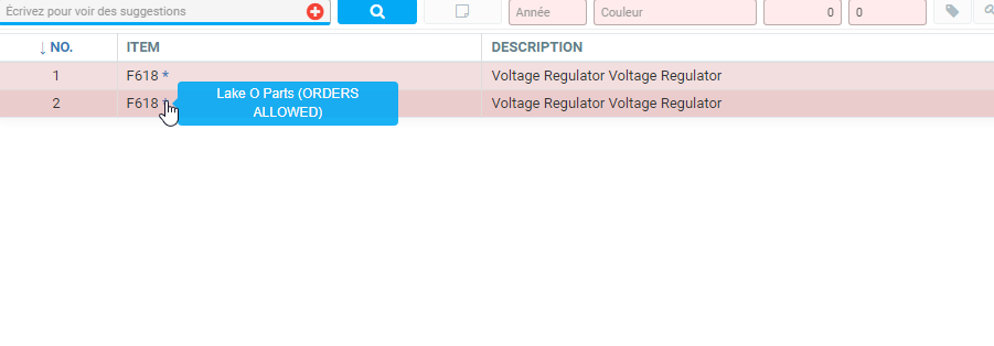 Vous pouvez voir le fournisseur de chaque pièce en survolant la souris: