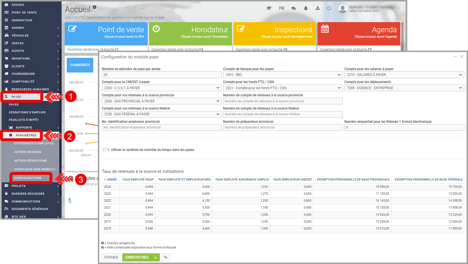 Afin d'utiliser le module de paie, il est important il est nécessaire d'effectuer certaines configurations de base.