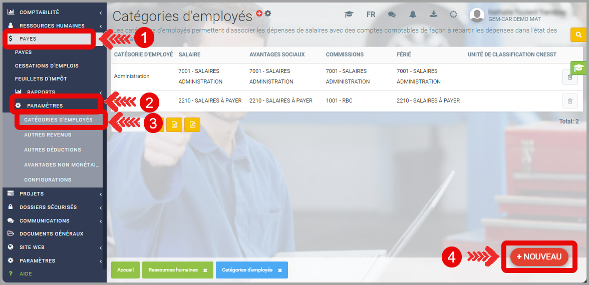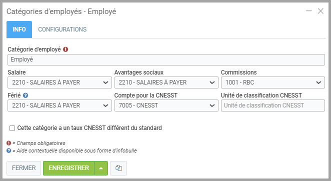 Les catégories d'employés vont déterminer les comptes comptables qui seront utilisés au moment de la paie.