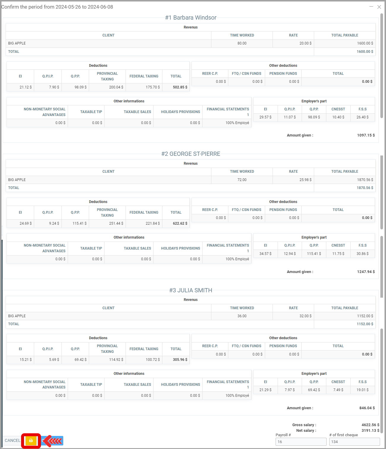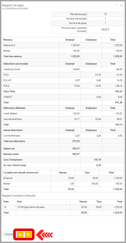- Le rapport présentera, pour chaque employé, un résumé des heures travaillées, du salaire, des déductions et d'autres informations pertinentes.
