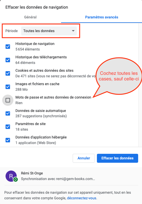 Si ça ne fonctionne toujours pas, essayez de vider les données de navigation de votre navigateur: