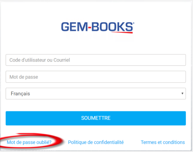 Pour réinitialiser votre mot de passe, cliquez sur le lien Mot de passe oublié? en bas à gauche de la fenêtre de connexion.