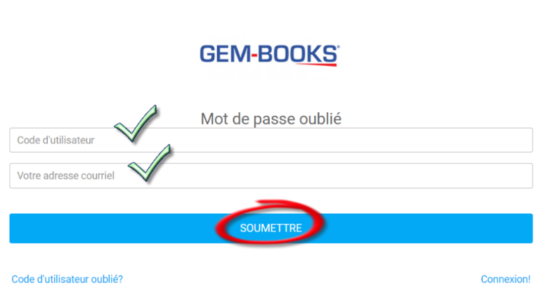 Si vous n'avez plus votre code d'utilisateur, cliquez sur le lien en bas à gauche.