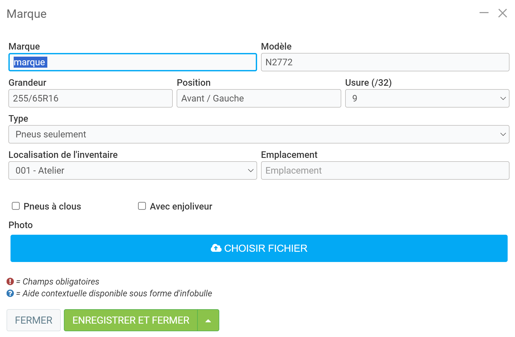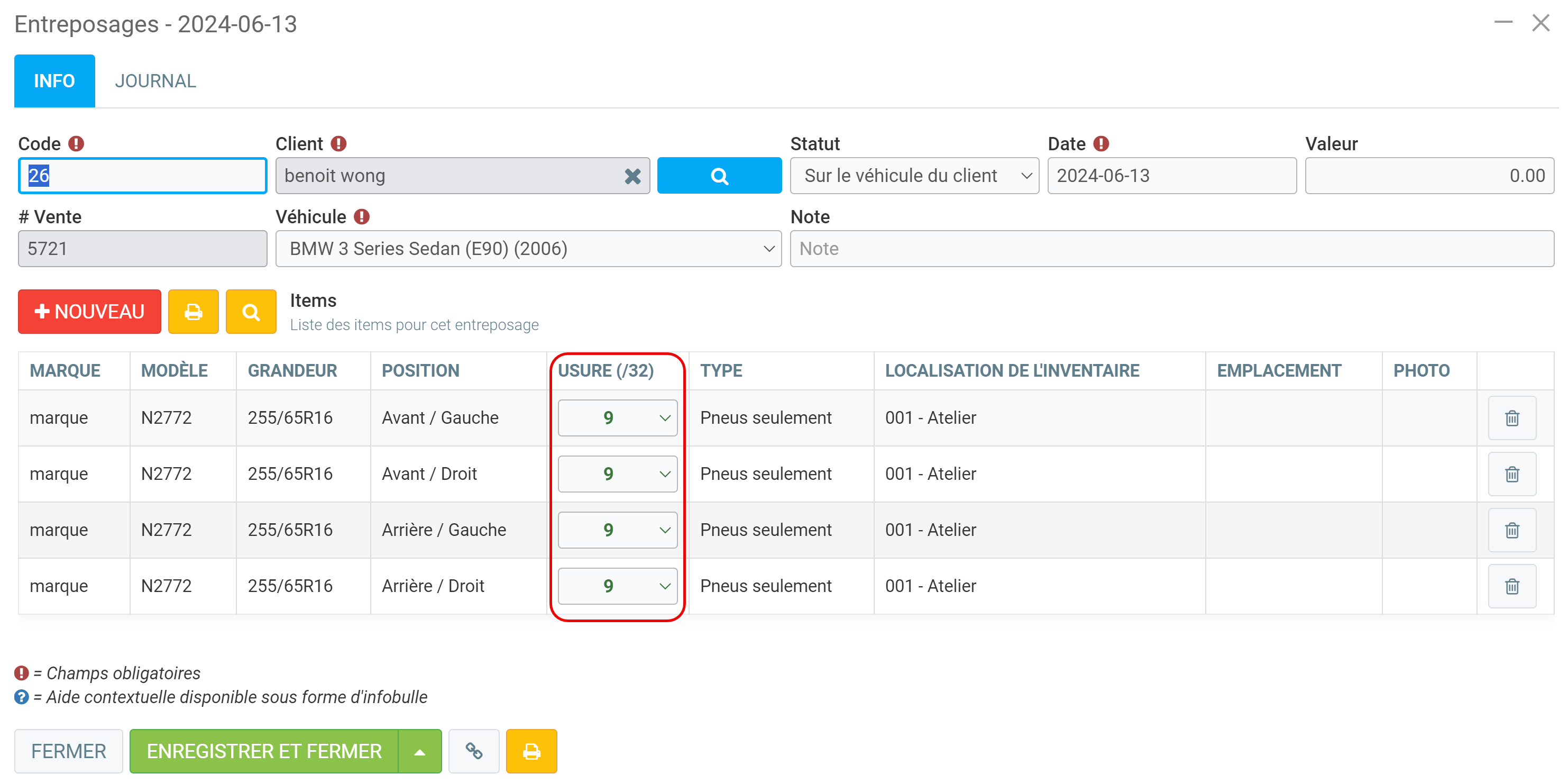 Maintenant, tous les pneus que le client entrepose sont visibles et peuvent facilement être modifiés en sélectionnant les pneus à modifier.