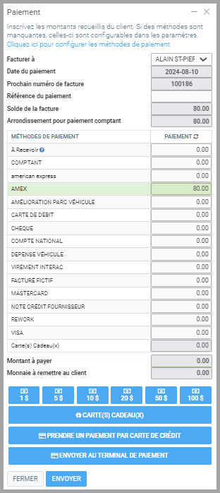 - De retour sur le Point de vente, procédez au Paiement.