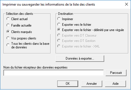 Clients marqués et Exporter vers le fichier - délimité par une virgule.