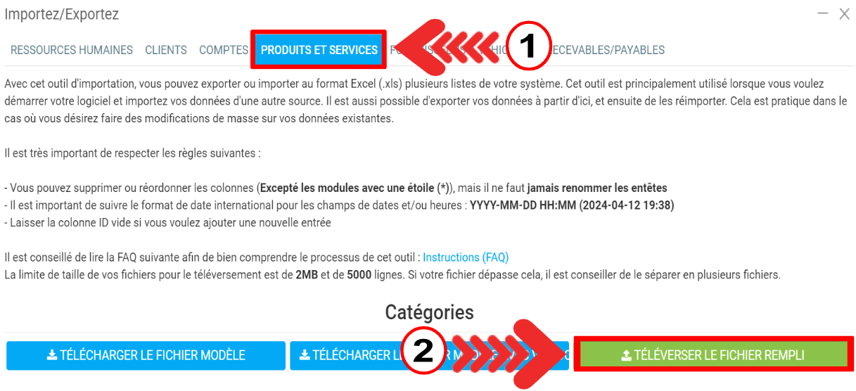 Il vous suffit donc de cliquer sur le bouton Télécharger le fichier modèle afin de télécharger le Excel, et ensuite de remplir le Excel avec les instructions de celui-ci.