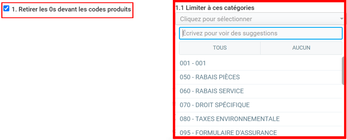 Si vous sélectionnez l'option Retirer les 0s devant les codes produits, vous pouvez effectuer l'importation et sélectionner cette option de nettoyage afin que les 0 précédant les codes produits soient supprimés. Par exemple: 0013 et 0017 sont les codes des pneus 13 et 17. En sélectionnant cette option et en appuyant sur le bouton Lancer le nettoyage, les 0 précédant le code seront supprimés.