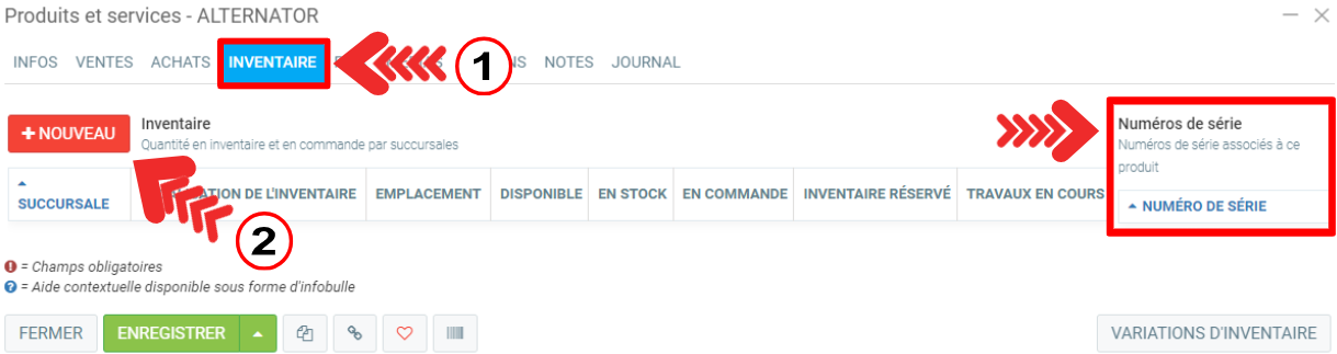 Pour ce faire, cliquez sur Inventaire > Produits et Services et cliquez sur le produit ou créez-en un nouveau en cliquant sur +Nouveau.