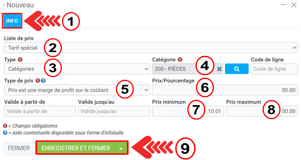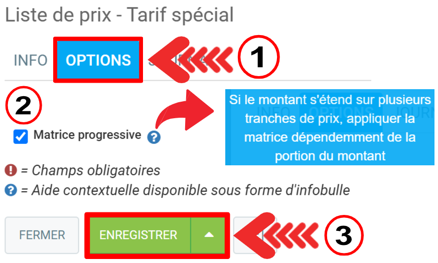 Avec la matrice progressive, le prix de vente sera calculé en tenant compte de 2 "paliers" de prix pour un item dont le coûtant est de 15$