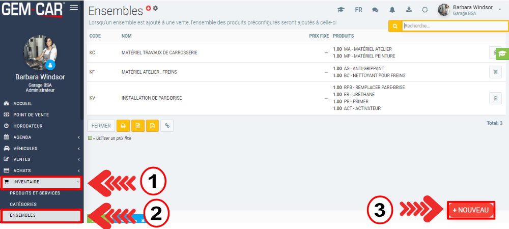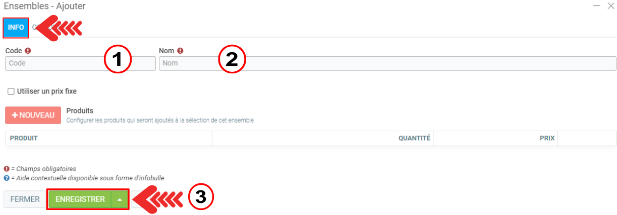 Dans le menu principal situé à gauche de l'écran, cliquez sur Inventaire > Ensembles > +Nouveau.