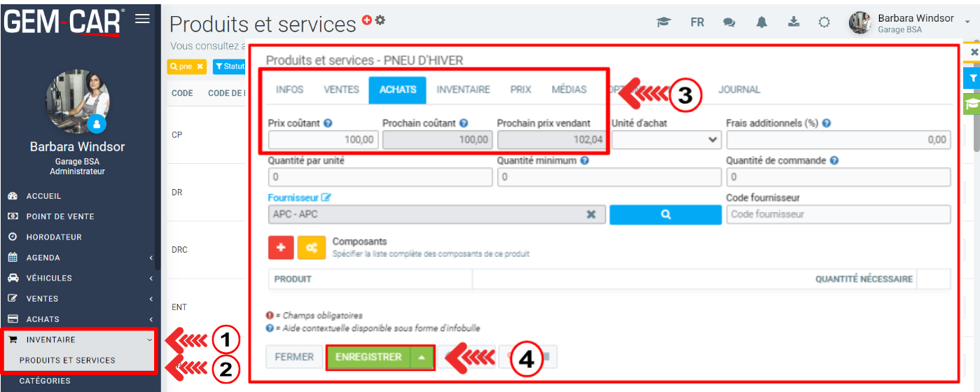 Note: le système calculera le prochain coûtant, mais vous devez entrer le prix coûtant.