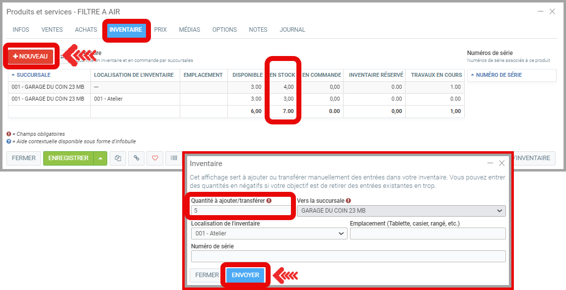 Sous l'onglet Inventaire, cliquez sur +Nouveau.