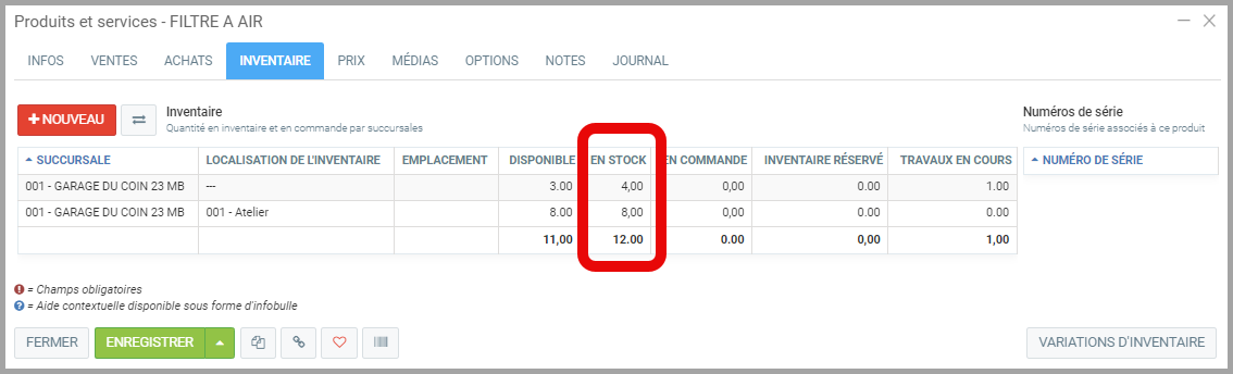 Modifier la quantité d'un produit en inventaire