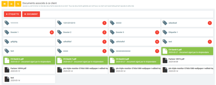 Chaque étiquette présente un numéro afin de démontrer le nombre de documents que celui-ci contient (aucun numéro signifie aucun document associé à cette étiquette).