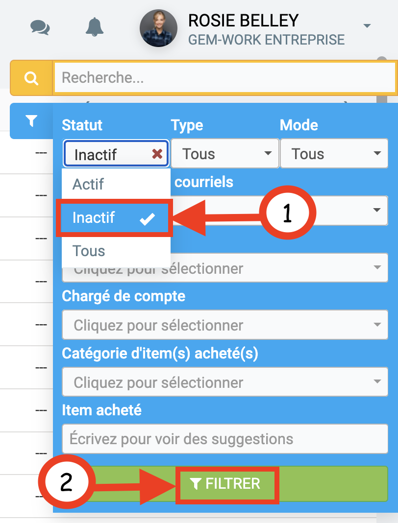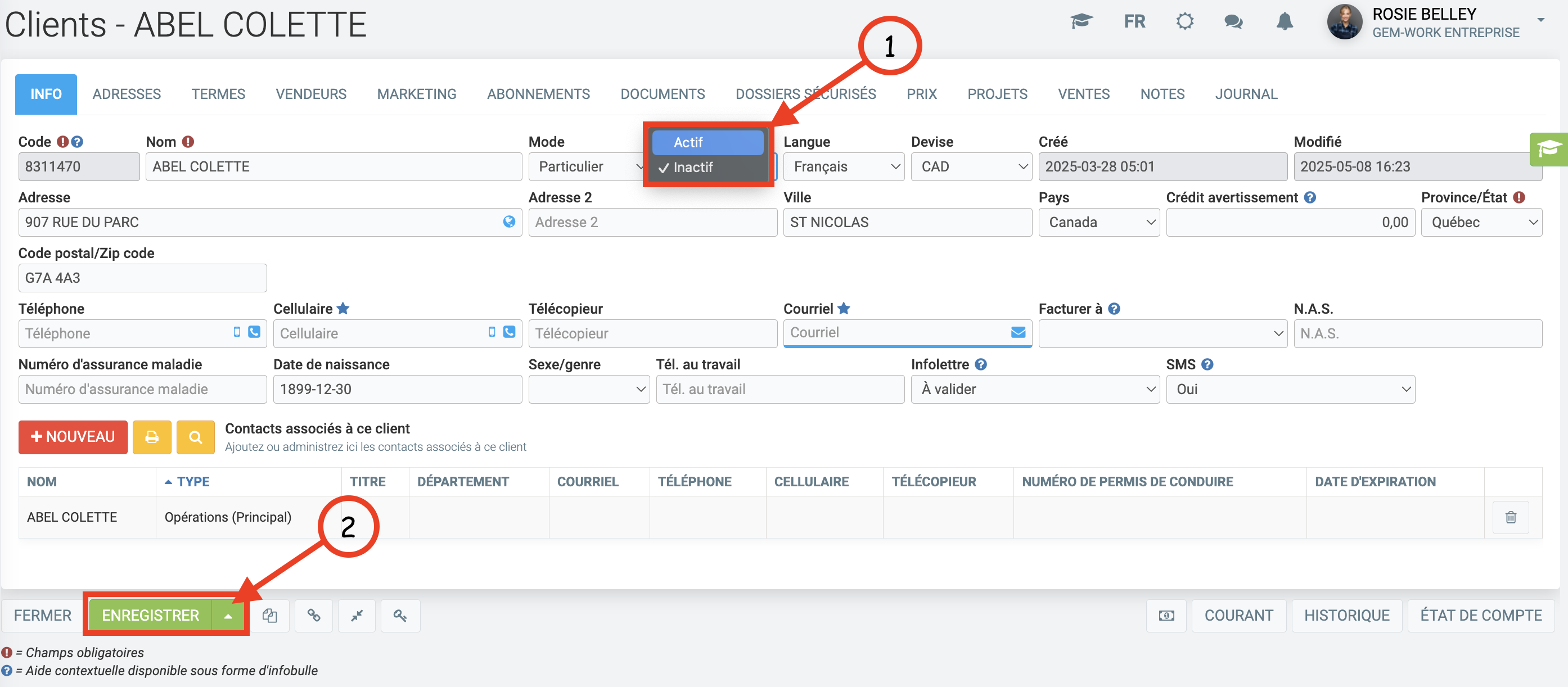 Les fiches inactives, ou désactivées, sont cachées dans les listes.