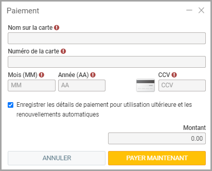 Note: Vous avez la possibilité de conserver les informations de paiement dans le dossier client pour une utilisation ultérieure.