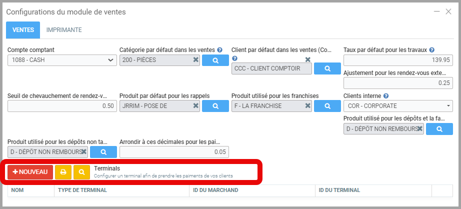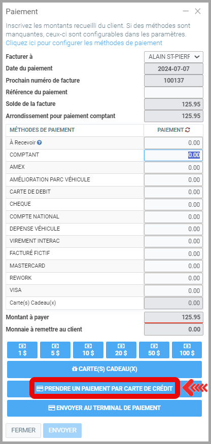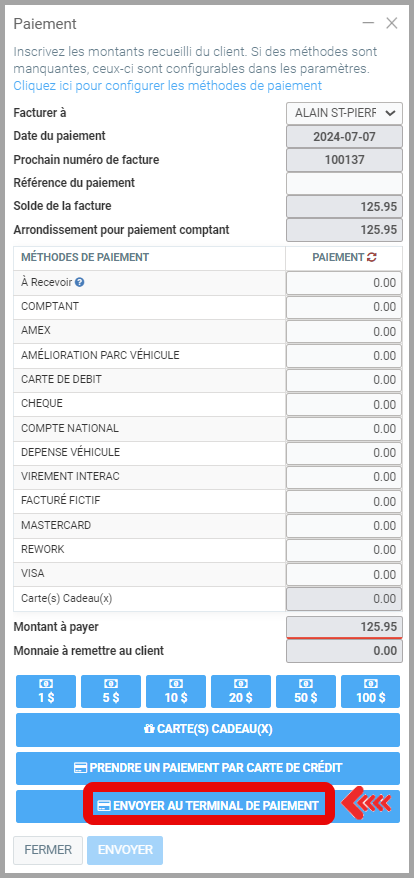 Une fois le terminal configuré, un nouveau bouton s'ajoute automatiquement aux moyens de paiement dans le Point de Vente.
