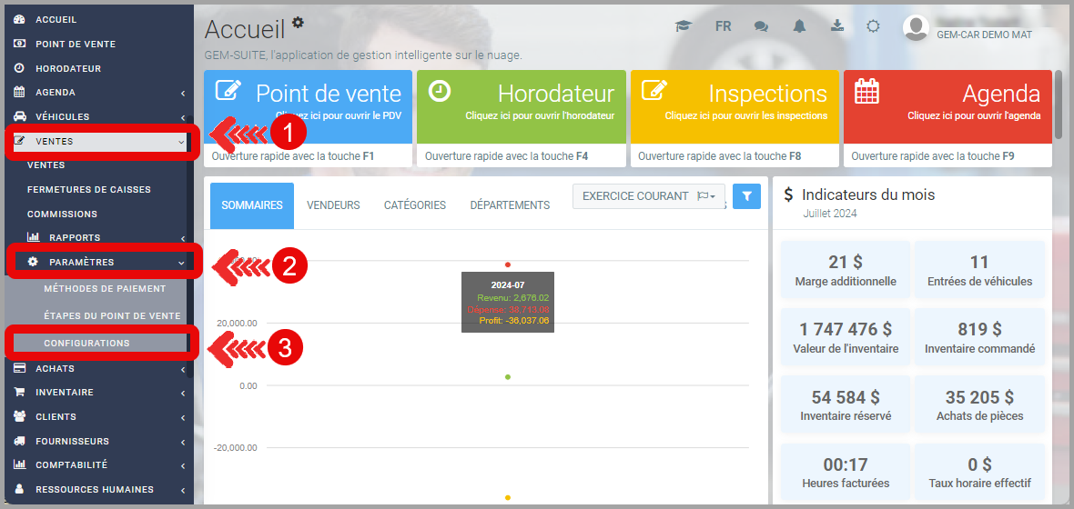 Dans le menu principal de gauche, cliquez sur Ventes > Paramètres > Configurations.