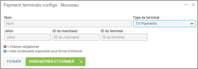 Voir How to view your business details and Till products with related financials on Till Merchant Portal pour plus de détails sur la façon de trouver les informations nécessaires pour configurer votre terminal de paiements dans GEM-CAR.
