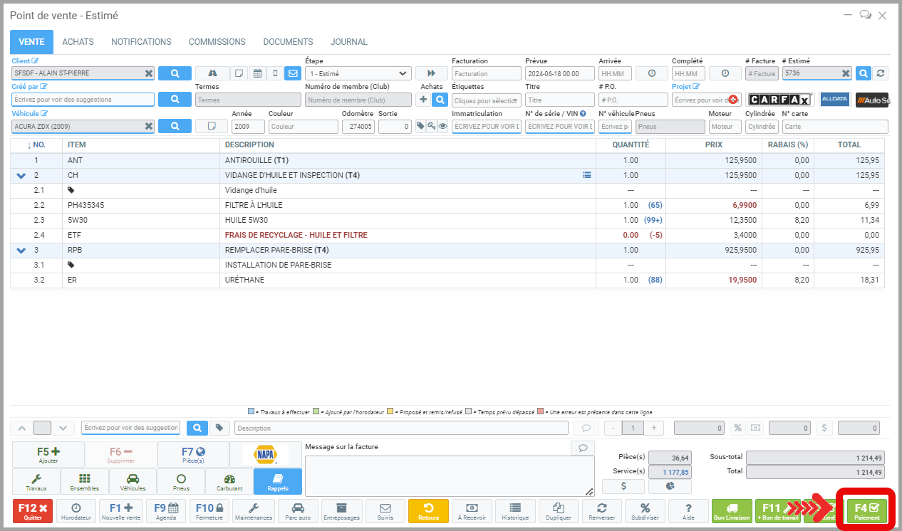- Pour envoyer une facture à un client par courriel, à partir du Point de Vente, cliquez sur Paiement (F4).