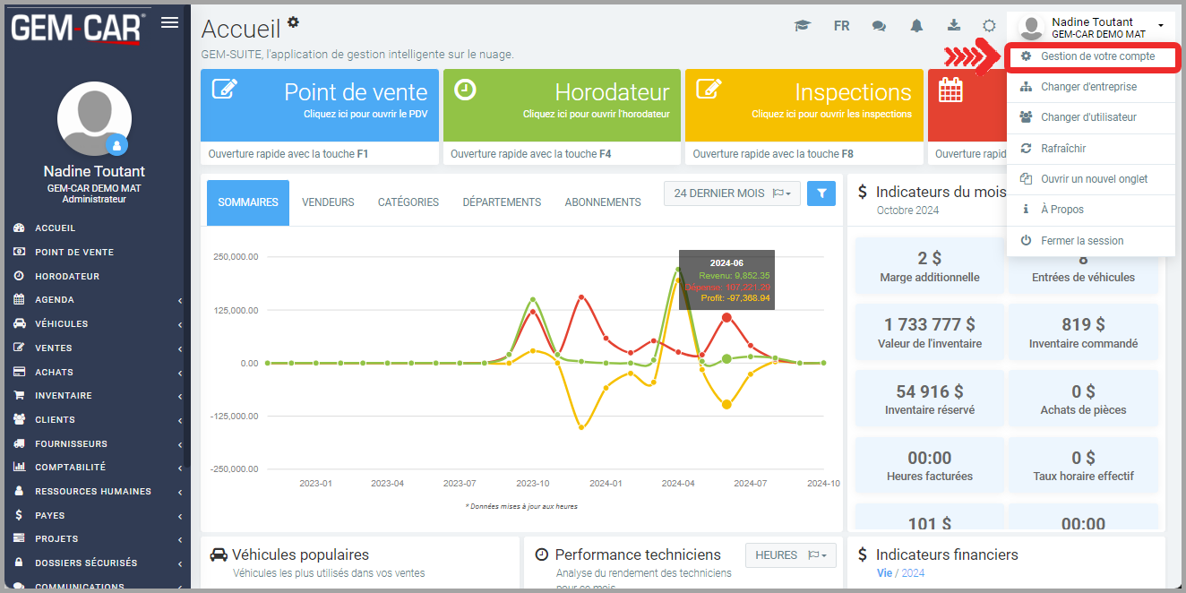 Dans le menu situé en haut à droite, cliquez sur votre Nom d’utilisateur > Gestion de votre compte.