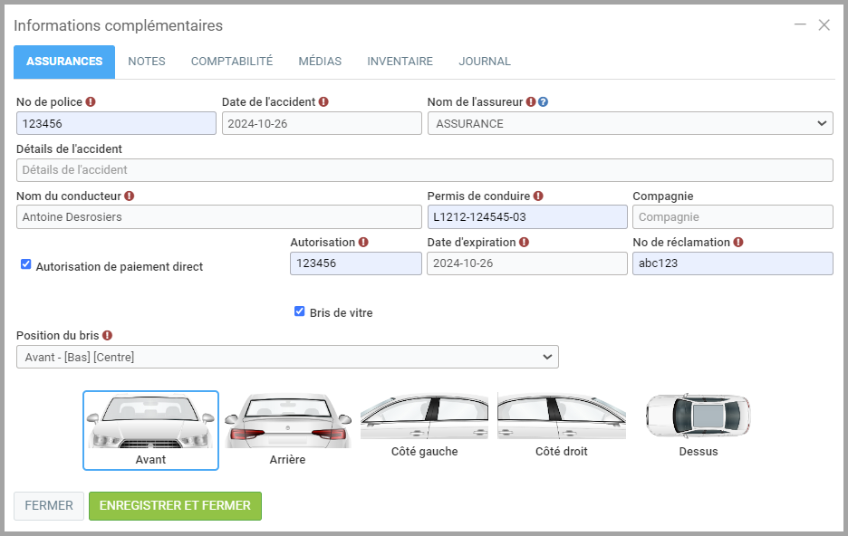 Attention! Le Module pour les réclamations d'assurances est requis. Voir Activation du module pour les réclamations d'assurances pour en savoir davantage sur comment s'abonner.