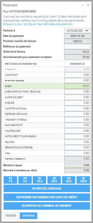 Appuyez de nouveau sur Paiement pour prendre le paiement du client pour la franchise.