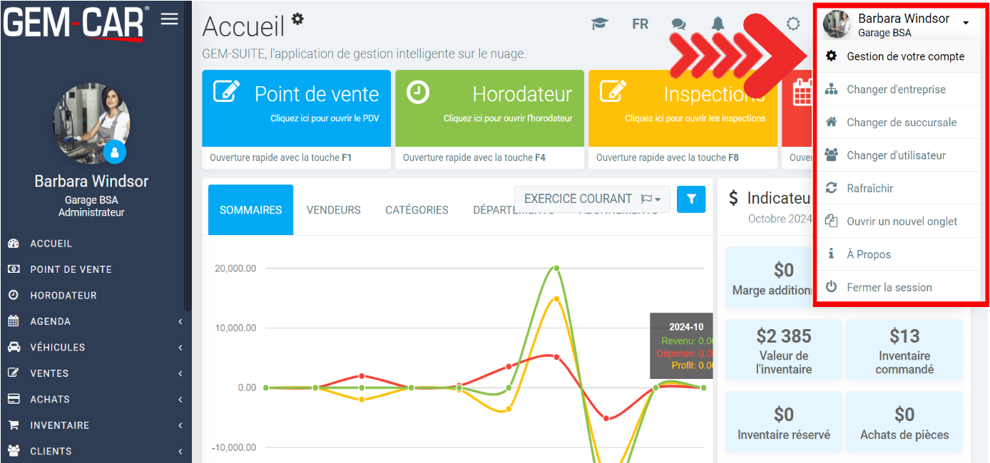 À partir du menu Gestion de votre compte, 4 onglets apparaissent: