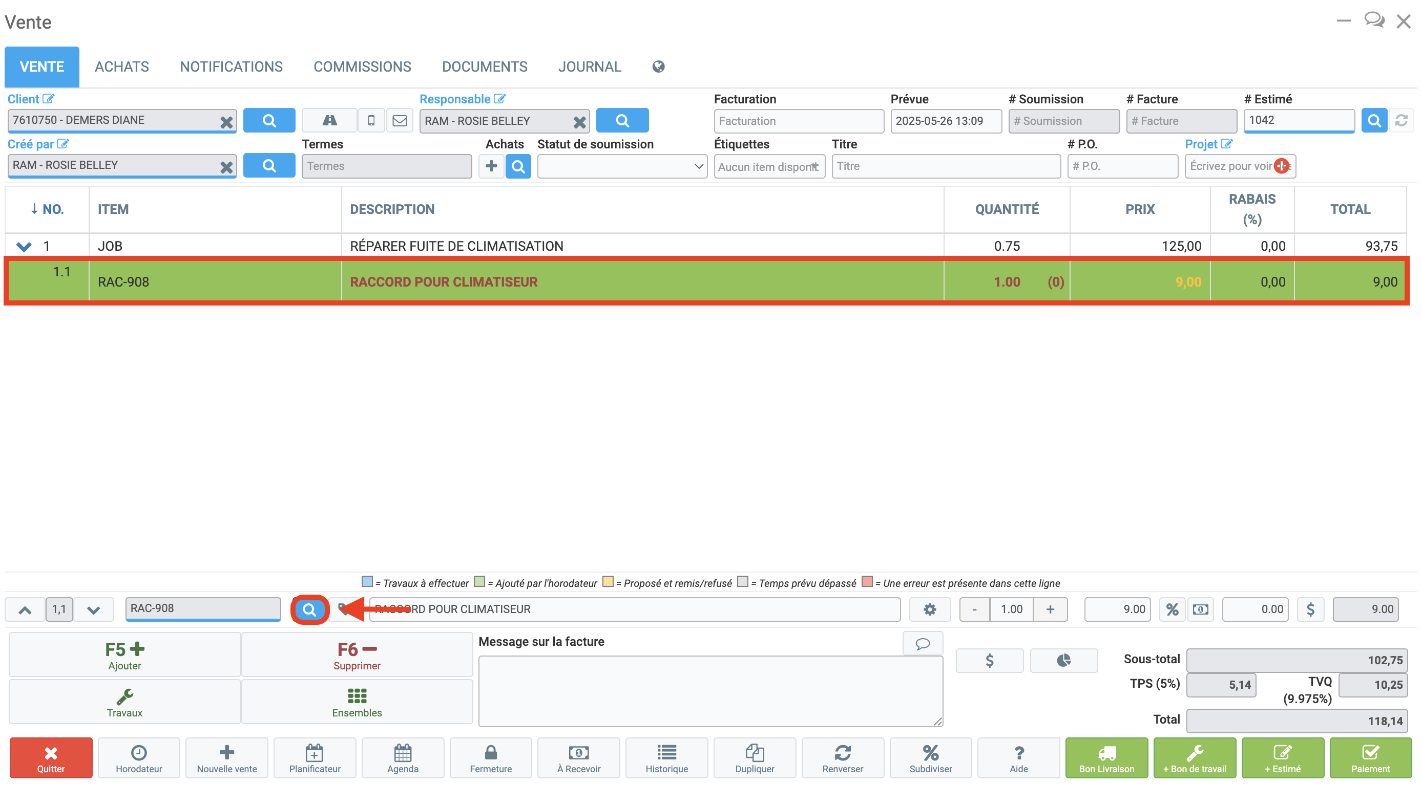 L'inventaire s'ajuste immédiatement en fonction de la quantité ajoutée.