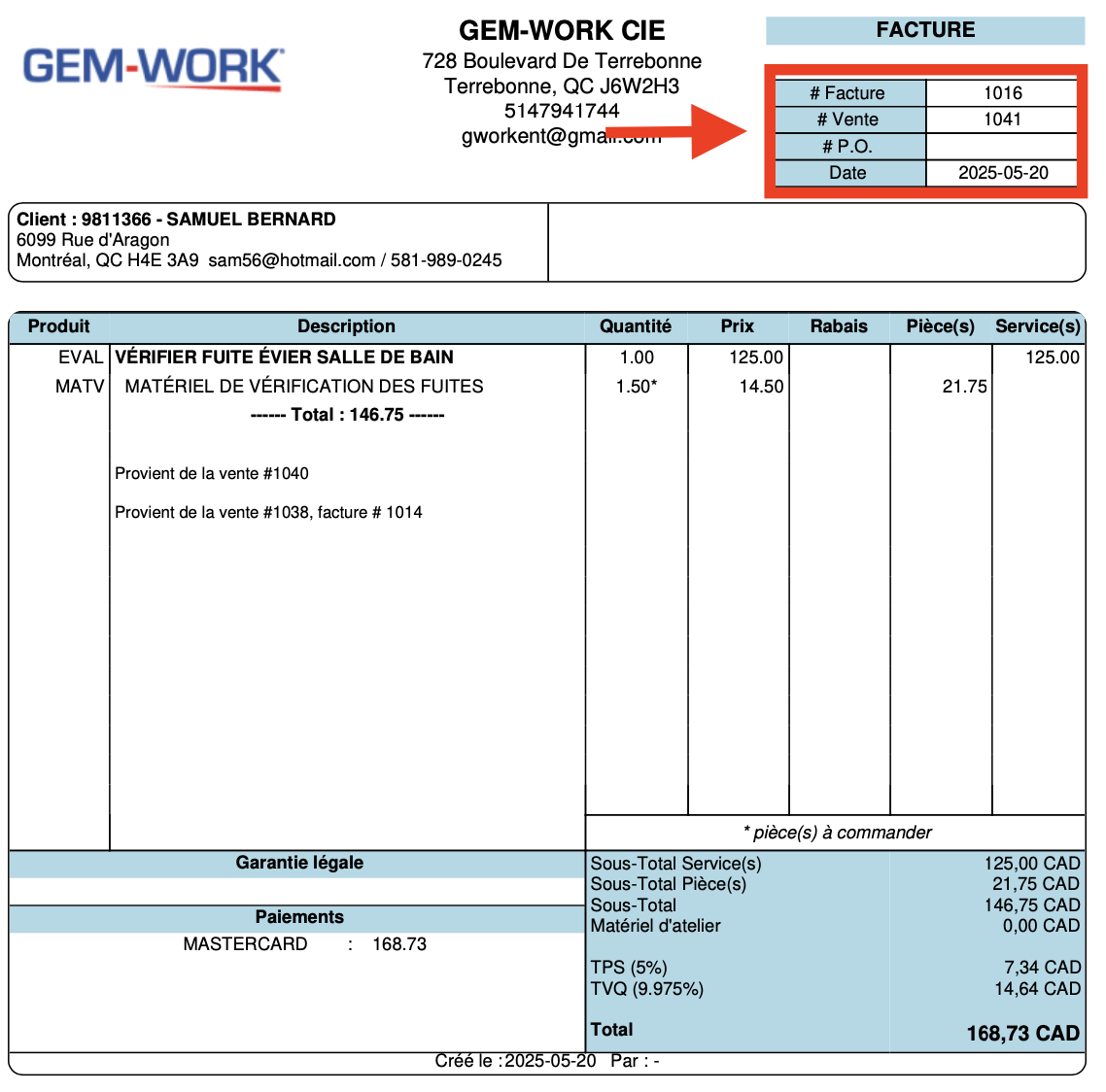 Lorsque vous cliquez sur le bouton, GEM-WORK vous demandera de confirmer le renversement avec le message: ''Êtes-vous certain de vouloir renverser cette vente?''
