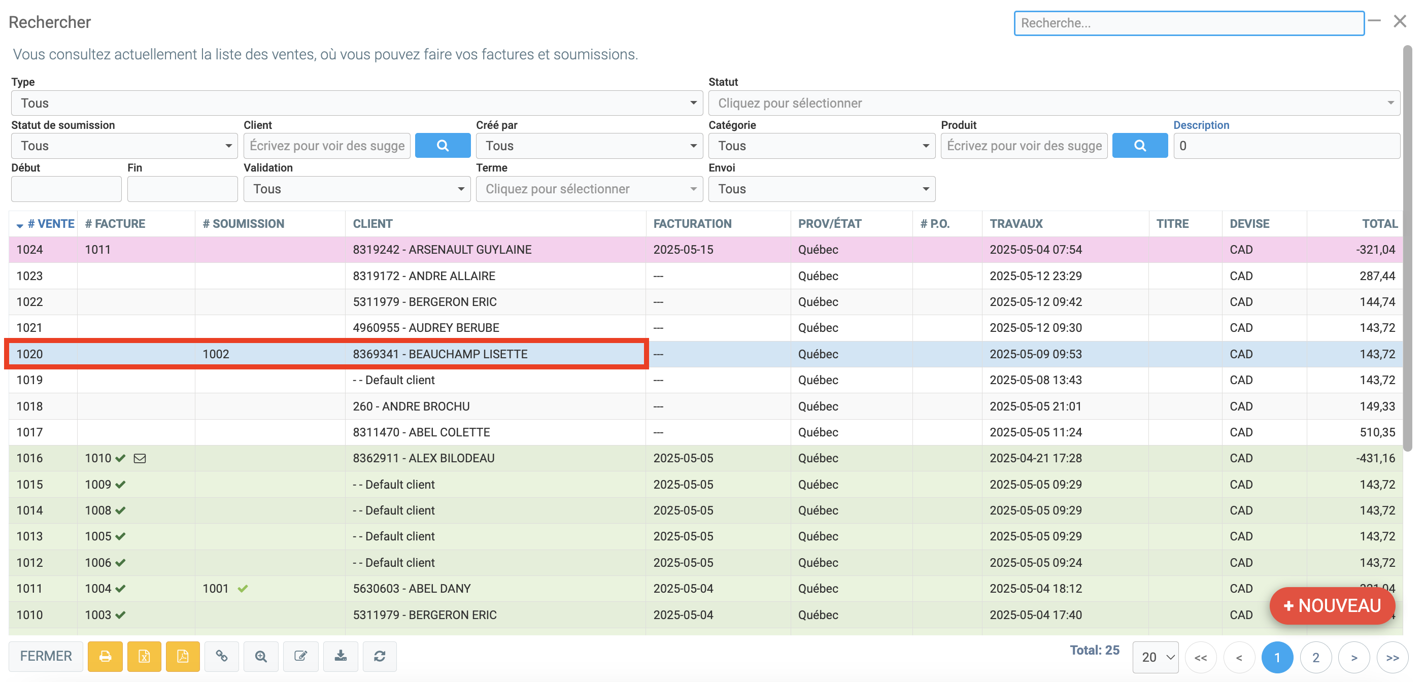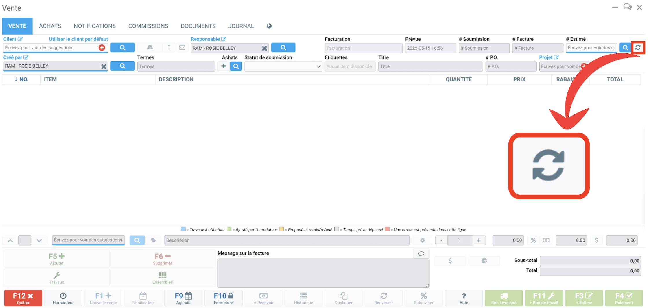 À partir de cette page, tous vos documents les plus récents s'affichent. Sélectionnez le client et GEM-WORK vous ramènera au Point de Vente avec l'estimé complet du client.