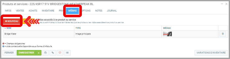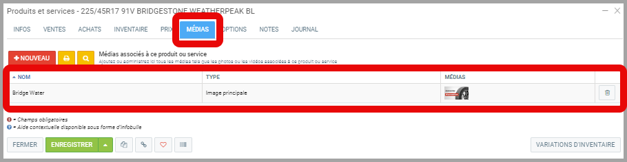 - Cliquez sur Enregistrer et fermer et l'image s'ajoutera à la liste des médias associés au produit.