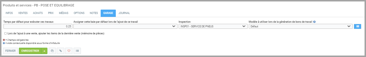Sous Assigner cette baie par défaut lors de l'ajout de ce travail, choisir la baie associer par ce service s'il n'y a qu'une seule baie qui puisse permettre l'exécution du travail. La sélection de la Baie Alignement pour l'exécution de la tâche d'Alignement pourrait être faite par défaut.