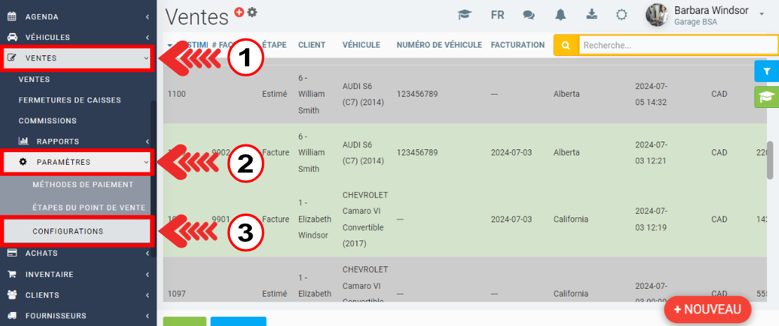 Dans le menu de gauche, cliquez sur Ventes > Paramètres > Configurations.