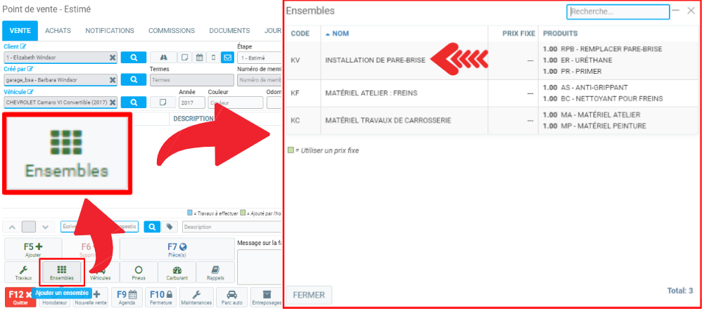 Pour ajouter un ensemble à un estimé, dans le Point de vente est très simple.